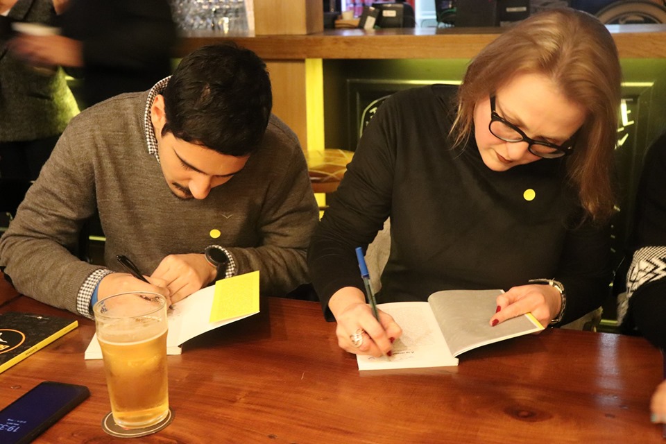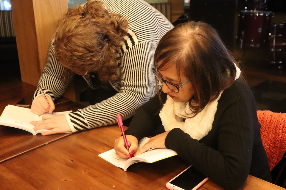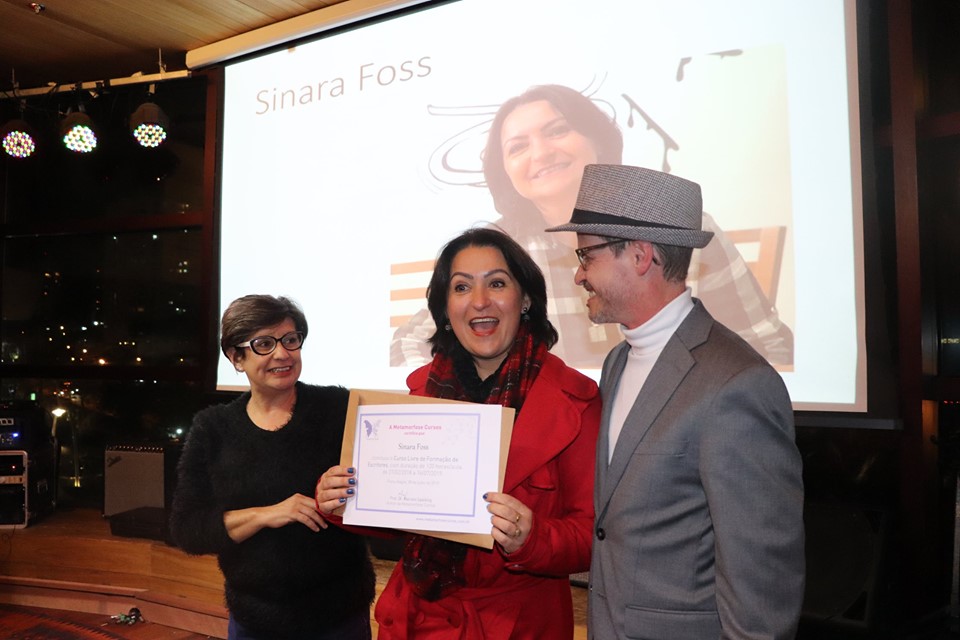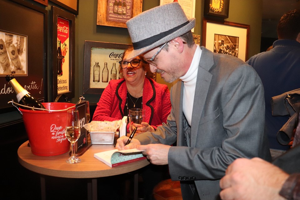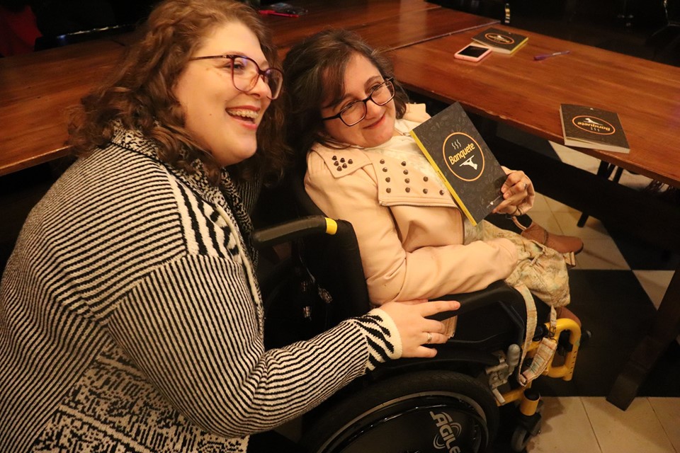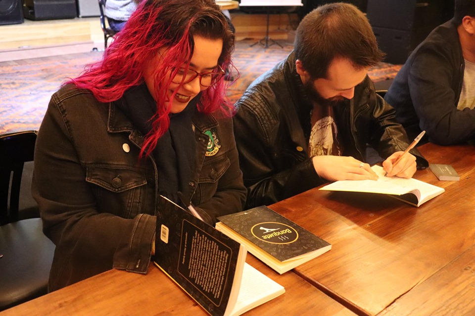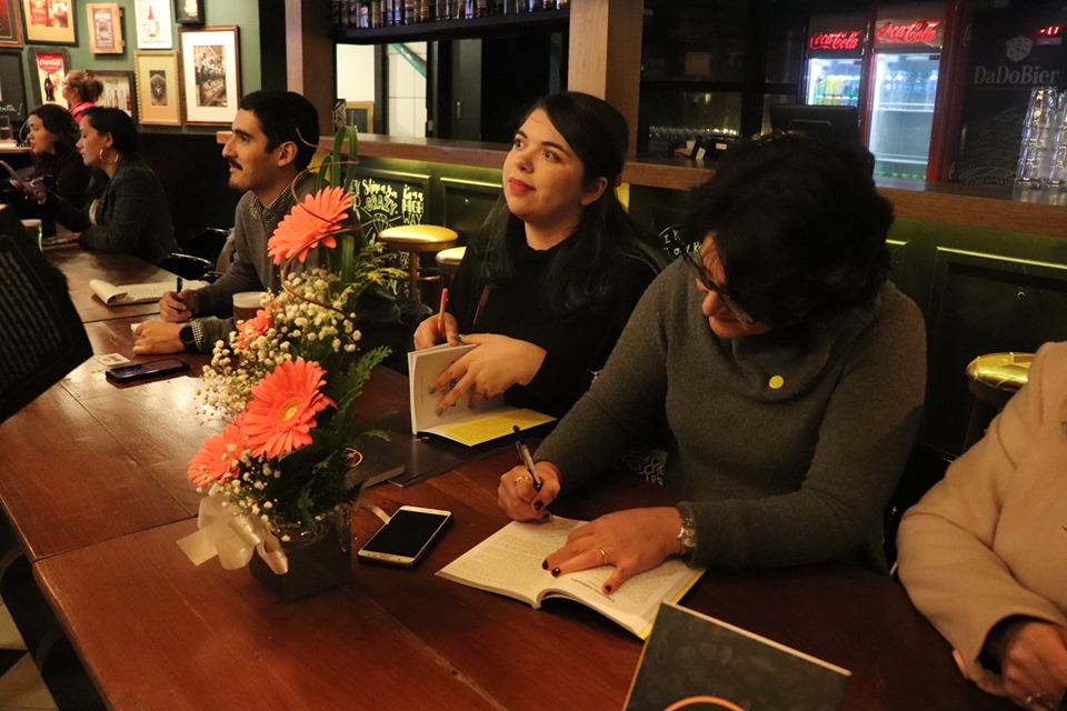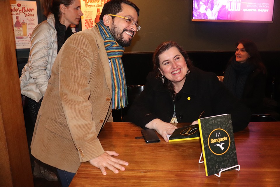Fotos do lançamento do livro Banquete e entrega dos certificados do Curso de Formação de Escritores, no Dado Bier